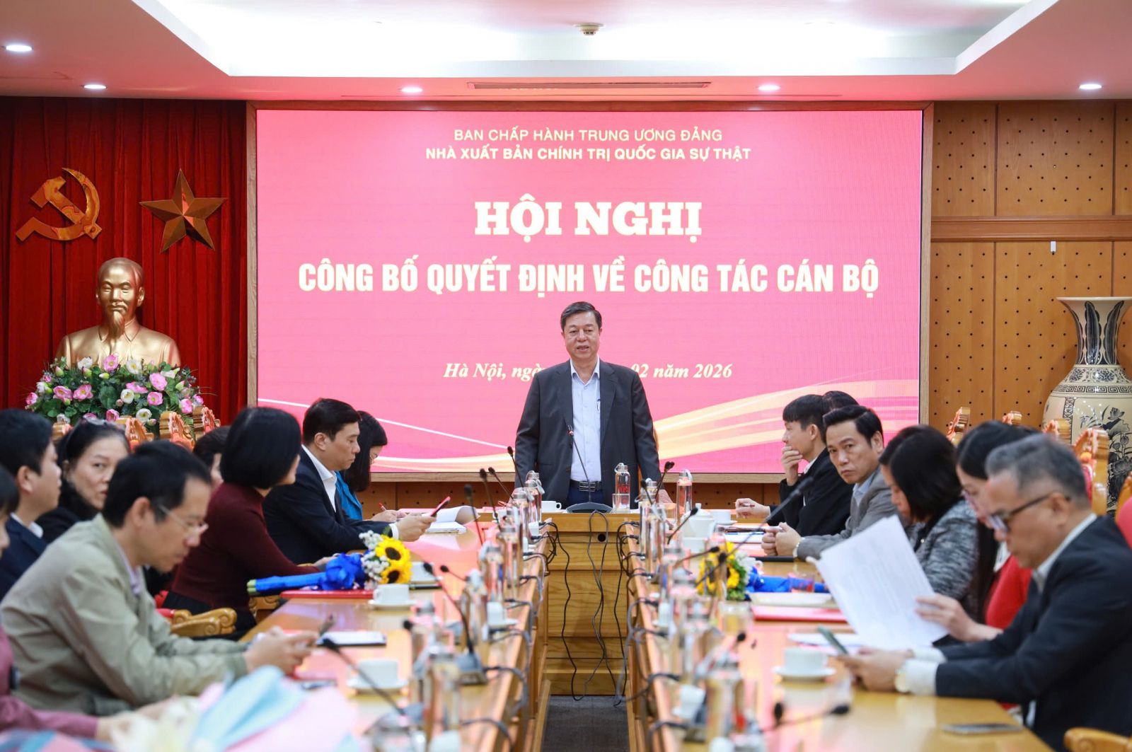 Sáng 2/2/2026, tại Hà Nội, Nhà xuất bản Chính trị quốc gia Sự thật tổ chức Hội nghị công bố quyết định về công tác cán bộ. PGS.TS. Vũ Trọng Lâm, Giám đốc - Tổng Biên tập Nhà xuất bản chủ trì Hội nghị.