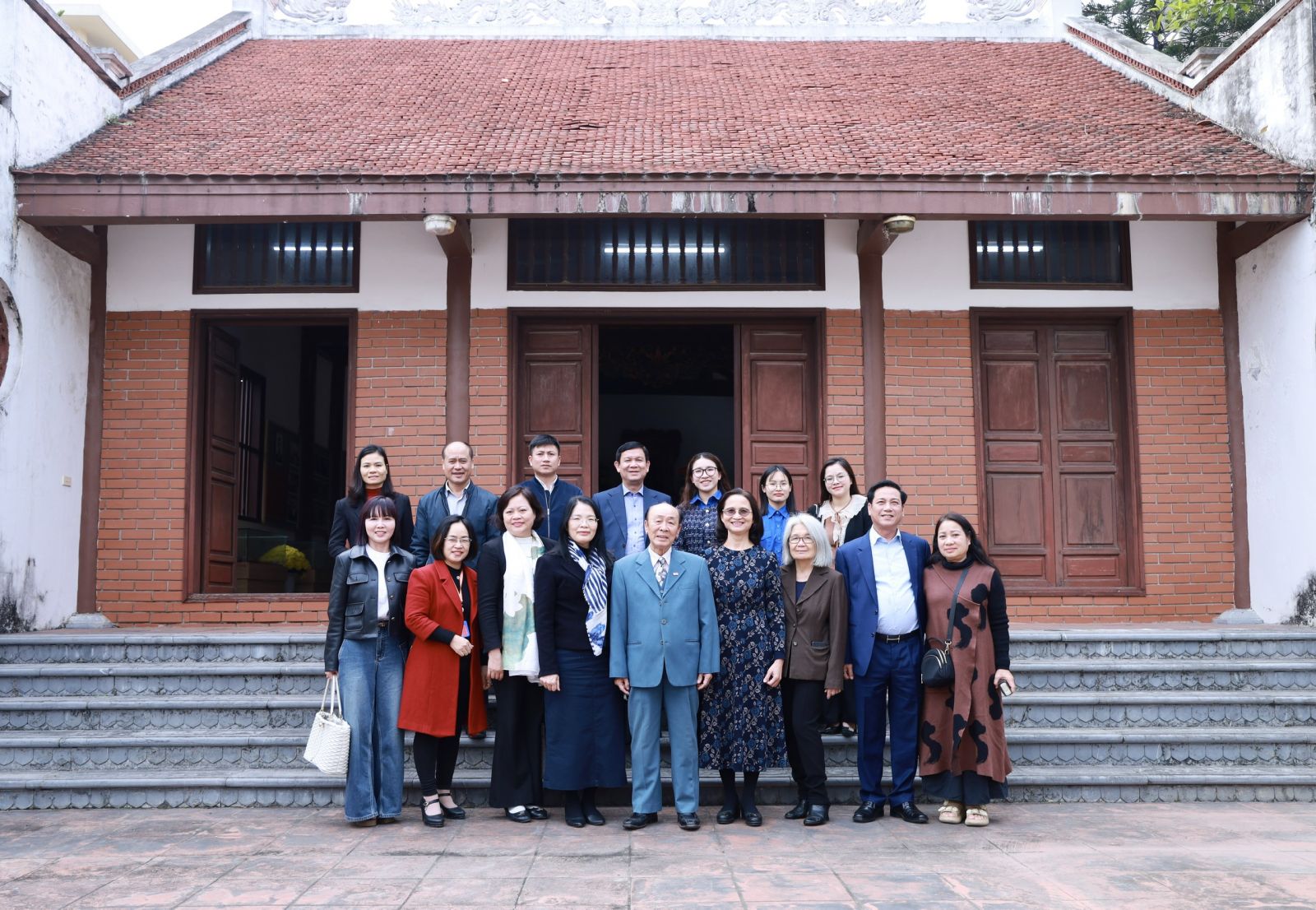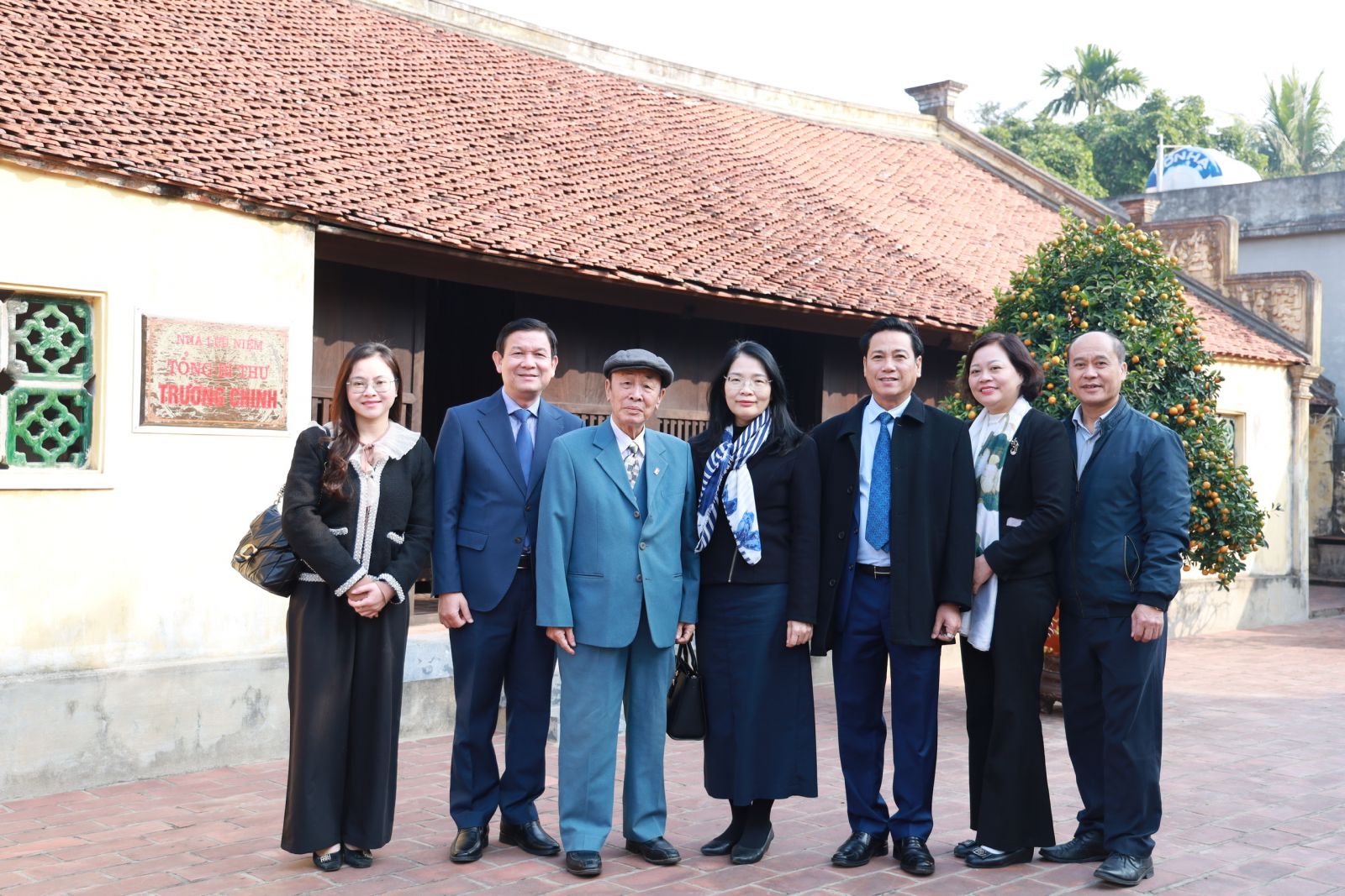 Đoàn cán bộ Nhà xuất bản Chính trị quốc gia Sự thật chụp ảnh lưu niệm tại Nhà lưu niệm Tổng Bí thư Trường Chinh.