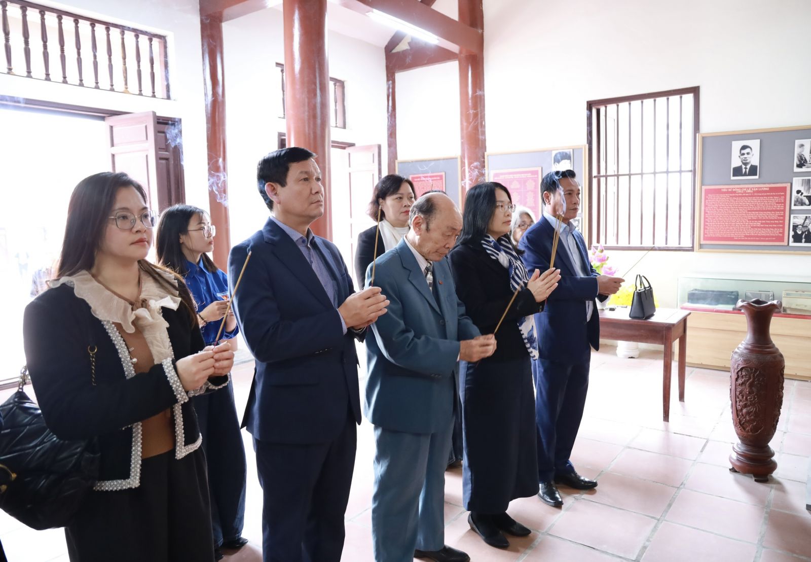 Đoàn công tác Nhà xuất bản Chính trị quốc gia Sự thật dâng hương tại Nhà lưu niệm đồng chí Lê Văn Lương (xã Nghĩa Trụ, tỉnh Hưng Yên).
