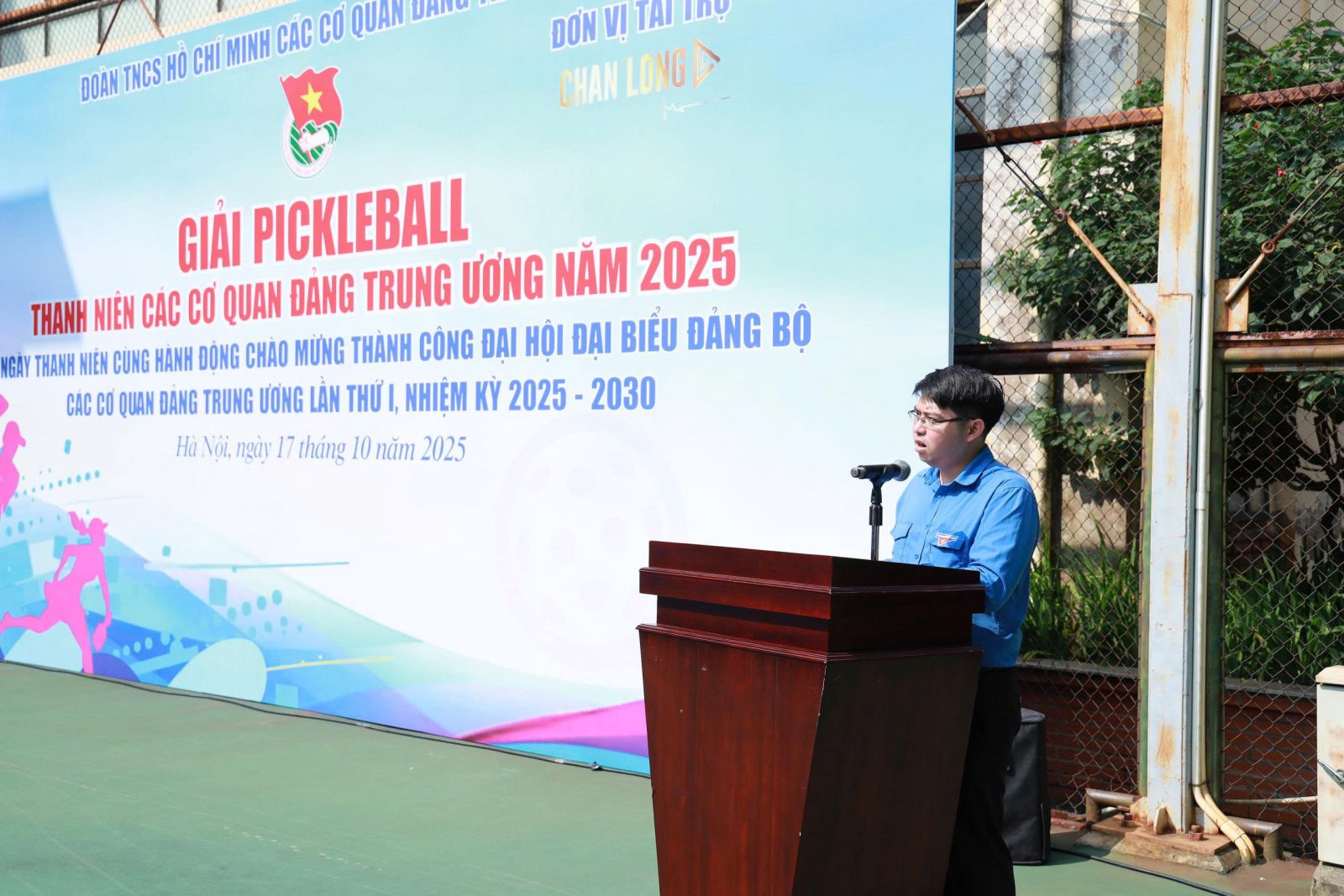 Đồng chí Nguyễn Xuân Khôi, Phó Bí thư Đoàn các cơ quan Đảng Trung ương phát biểu khai mạc Giải đấu.