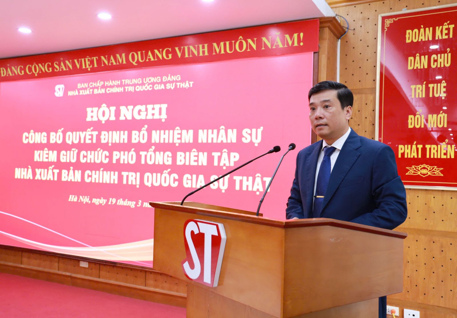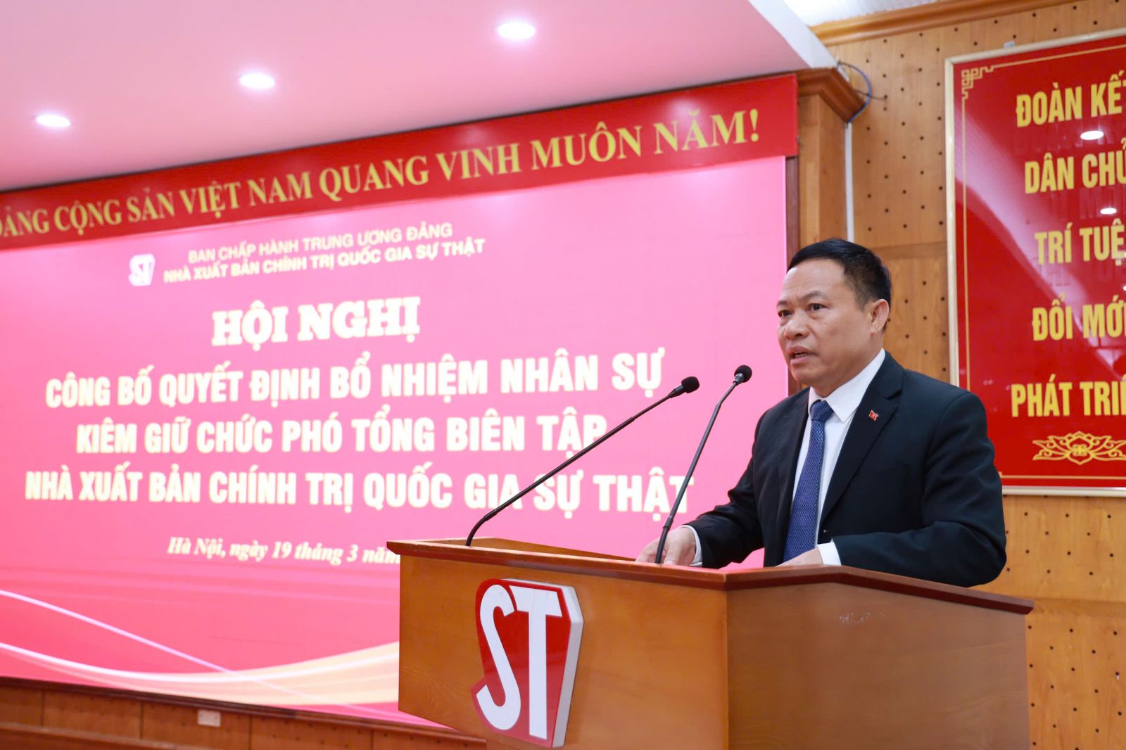 Đồng chí Nguyễn Xuân Liết, Phó Vụ trưởng Vụ V, Ban Tổ chức Trung ương công bố quyết định bổ nhiệm đồng chí Nguyễn Thái Bình, Phó Giám đốc Nhà xuất bản Chính trị quốc gia Sự thật kiêm giữ chức Phó Tổng Biên tập Nhà xuất bản.