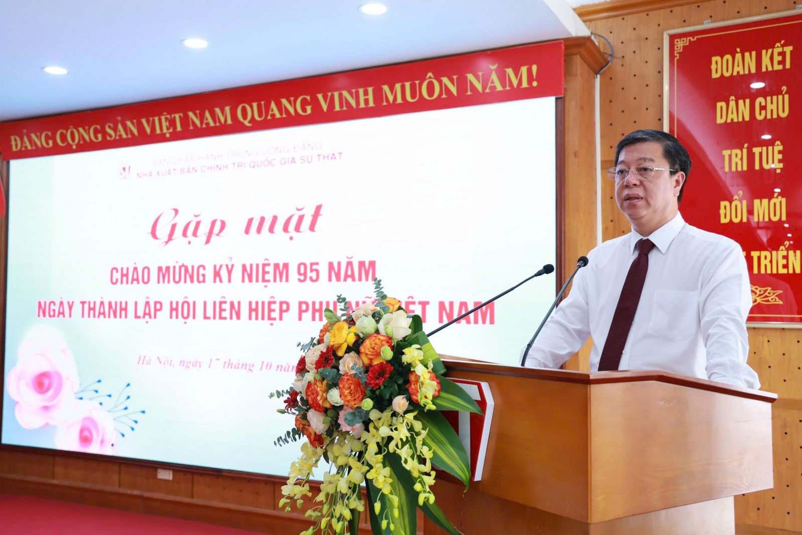 PGS.TS. Vũ Trọng Lâm, Giám đốc - Tổng Biên tập Nhà xuất bản Chính trị quốc gia Sự thật phát biểu chúc mừng toàn thể nữ cán bộ, viên chức, người lao động Nhà xuất bản tại buổi Gặp mặt.