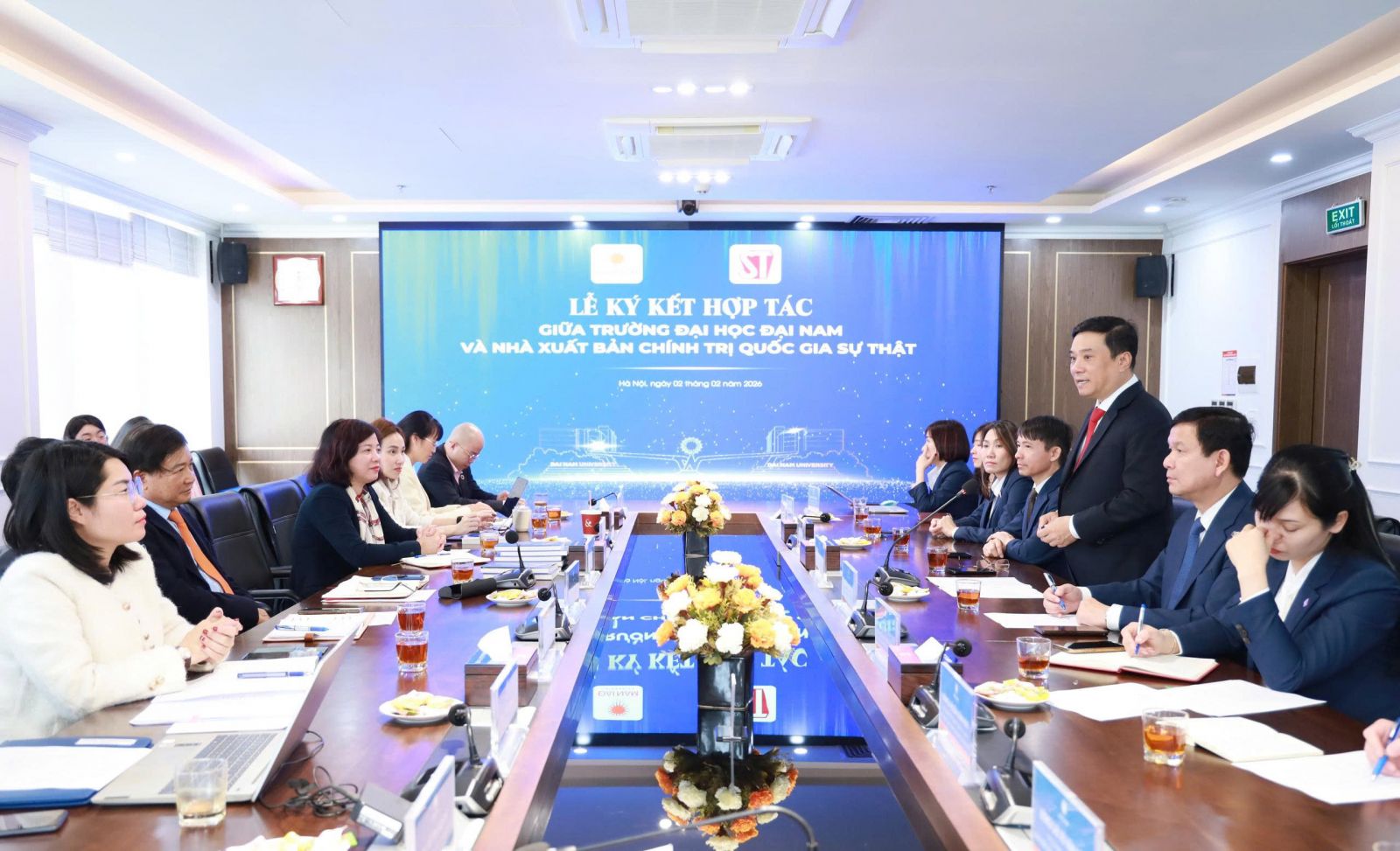 Theo Quy chế phối hợp được ký kết giữa hai cơ quan giai đoạn 2026 - 2030, hai bên thống nhất triển khai hợp tác toàn diện trên nhiều lĩnh vực. Trong công tác xuất bản, Nhà xuất bản Chính trị quốc gia Sự thật và Trường Đại học Đại Nam phối hợp ký kết hợp đồng xuất bản sách, tài liệu, giáo trình và các công trình nghiên cứu khoa học dưới nhiều hình thức như sách giấy, sách điện tử, audio, media.