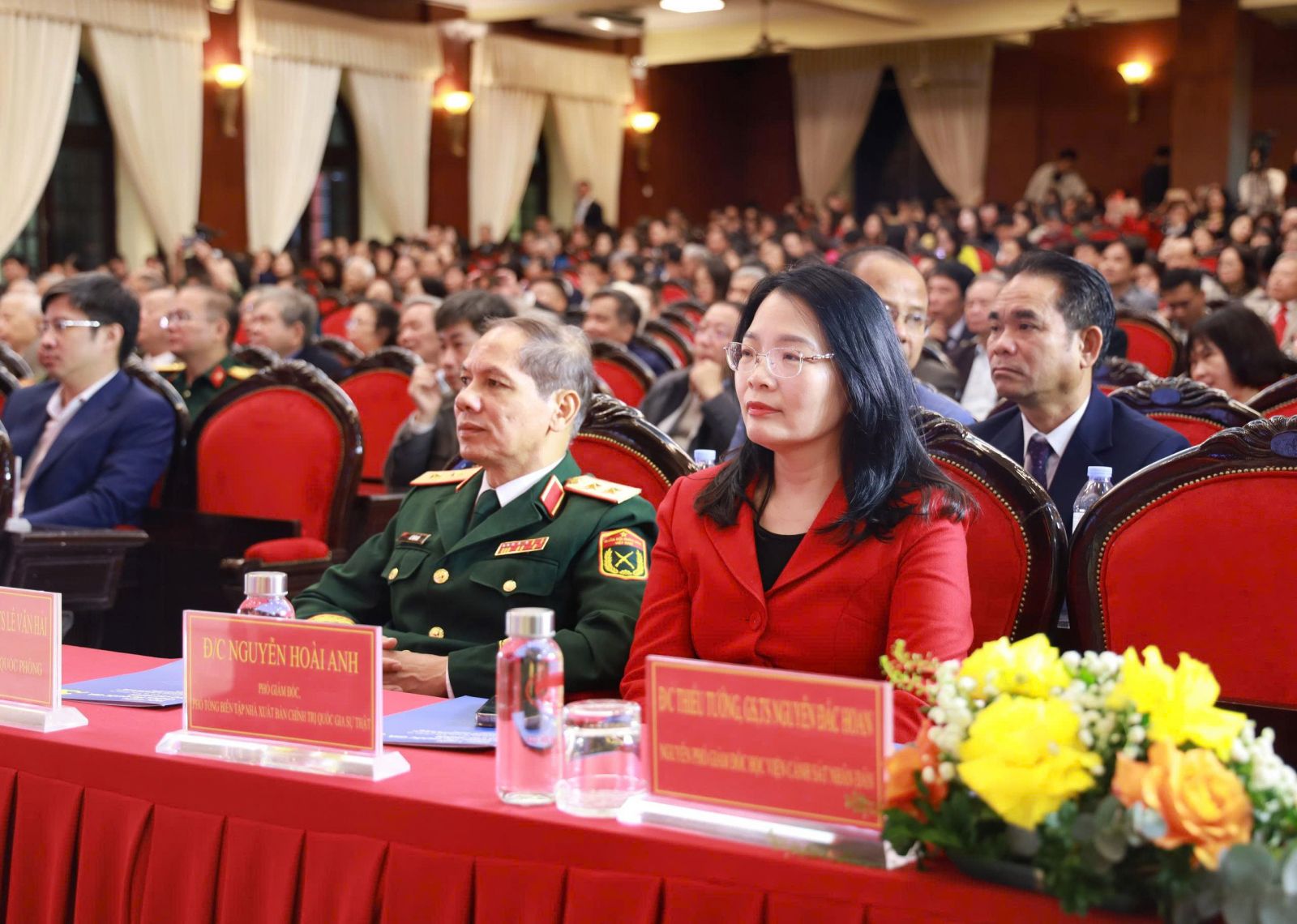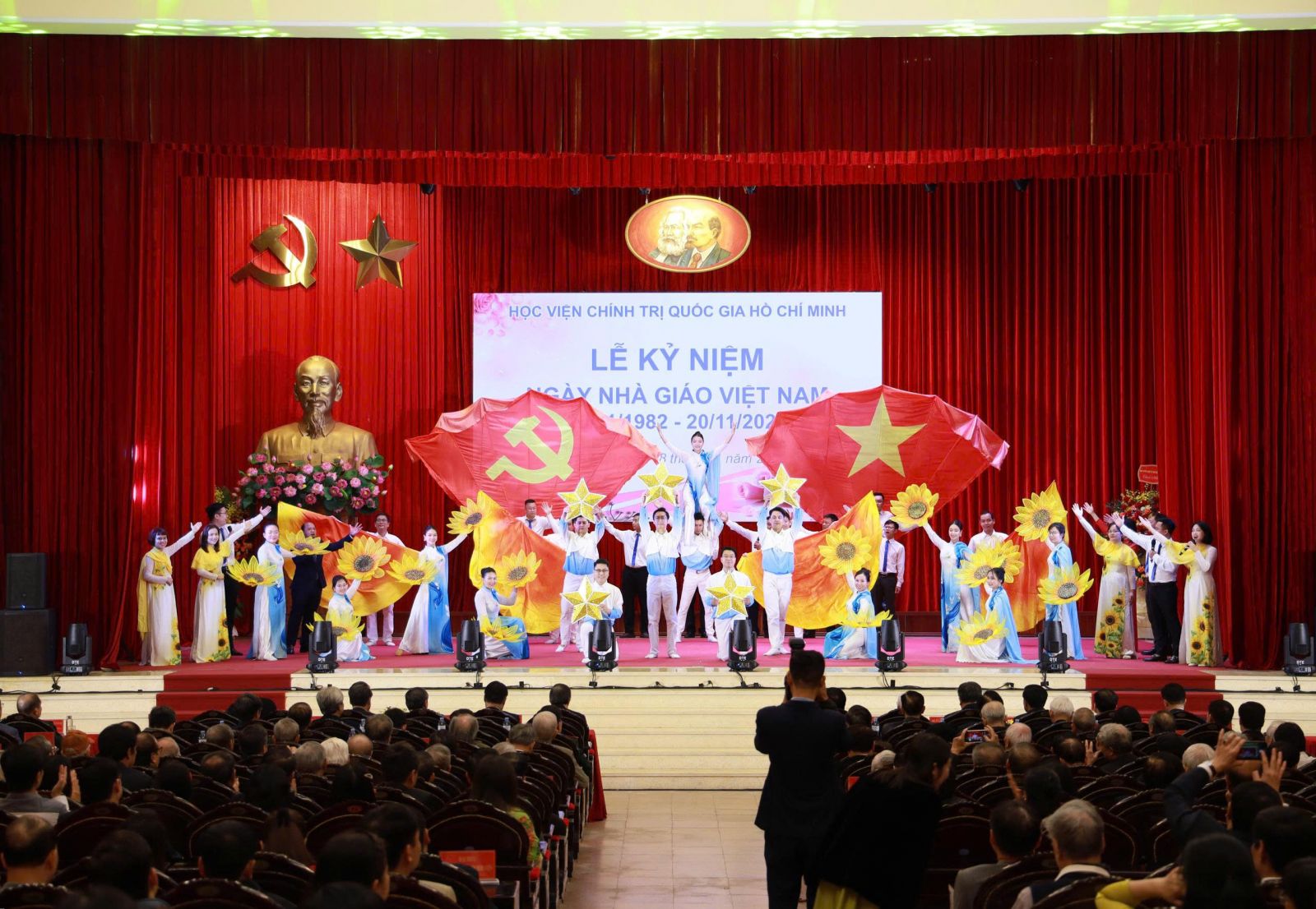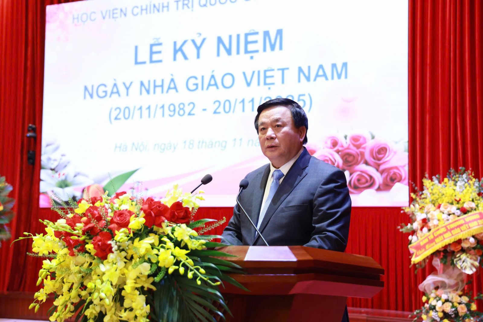 Phát biểu tại lễ kỷ niệm, đồng chí Nguyễn Xuân Thắng, Ủy viên Bộ Chính trị, Giám đốc Học viện Chính trị quốc gia Hồ Chí Minh, Chủ tịch Hội đồng Lý luận Trung ương khẳng định, mỗi khi đến Ngày Nhà giáo Việt Nam 20/11, chúng ta lại bồi hồi tưởng nhớ Chủ tịch Hồ Chí Minh - người thầy vĩ đại của cách mạng Việt Nam, người đặt nền móng cho sự nghiệp đào tạo, bồi dưỡng cán bộ của Đảng. Trong suốt 76 năm qua, Học viện Chính trị quốc gia Hồ Chí Minh luôn kiên định sứ mệnh đào tạo, bồi dưỡng đội ngũ cán bộ lãnh đạo, quản lý các cấp; nghiên cứu lý luận chính trị, tham mưu tư vấn chính sách, góp phần trực tiếp vào hoạch định và phát triển đường lối, chủ trương của Đảng và Nhà nước.