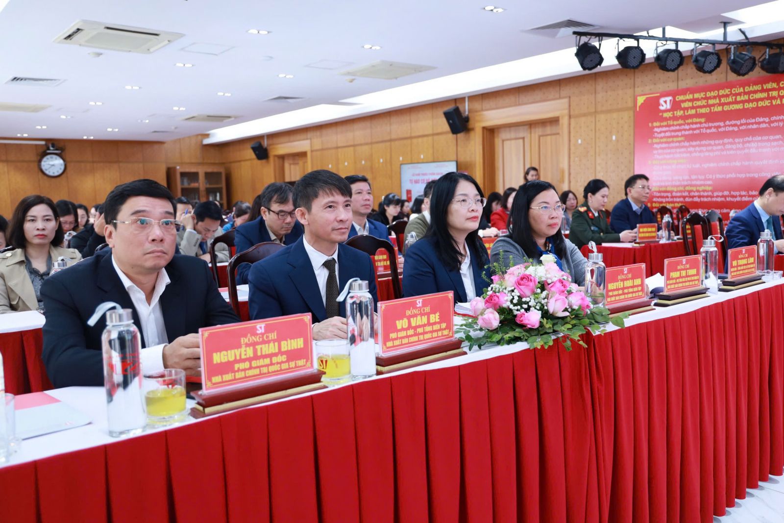 Các đồng chí trong Ban Giám đốc Nhà xuất bản Chính trị quốc gia Sự thật tham dự lễ giới thiệu sách.
