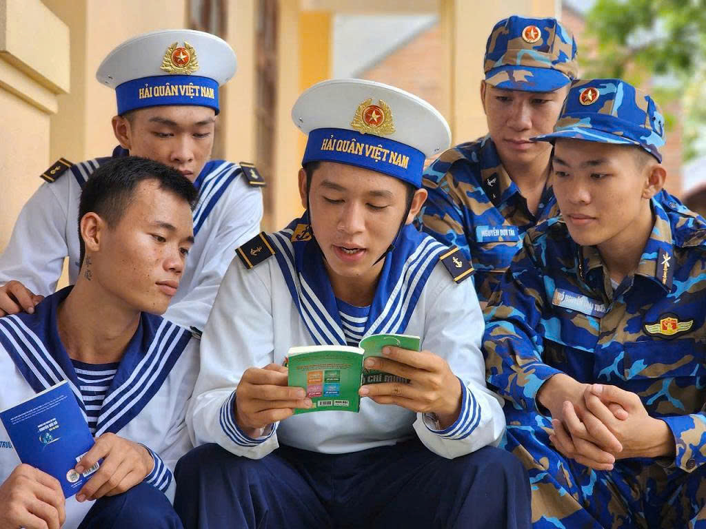 Chiến sĩ Trường Sa đọc sách do Nhà xuất bản Chính trị quốc gia Sự thật gửi tặng.
