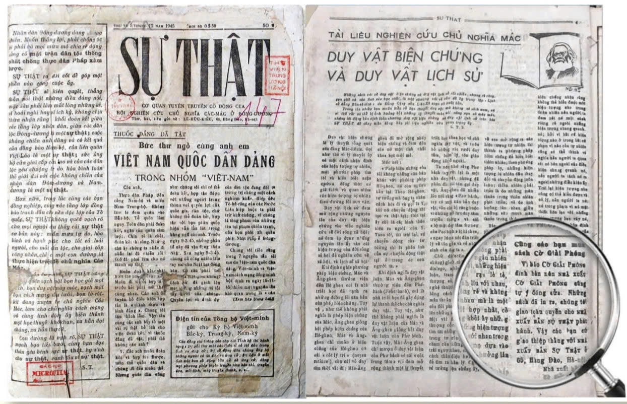 Thông báo của Nhà xuất bản Cờ giải phóng về việc giao cho Nhà xuất bản Sự thật phát hành những sách đã in (đăng trên Báo Sự thật số đầu tiên ra ngày 5/12/1945).