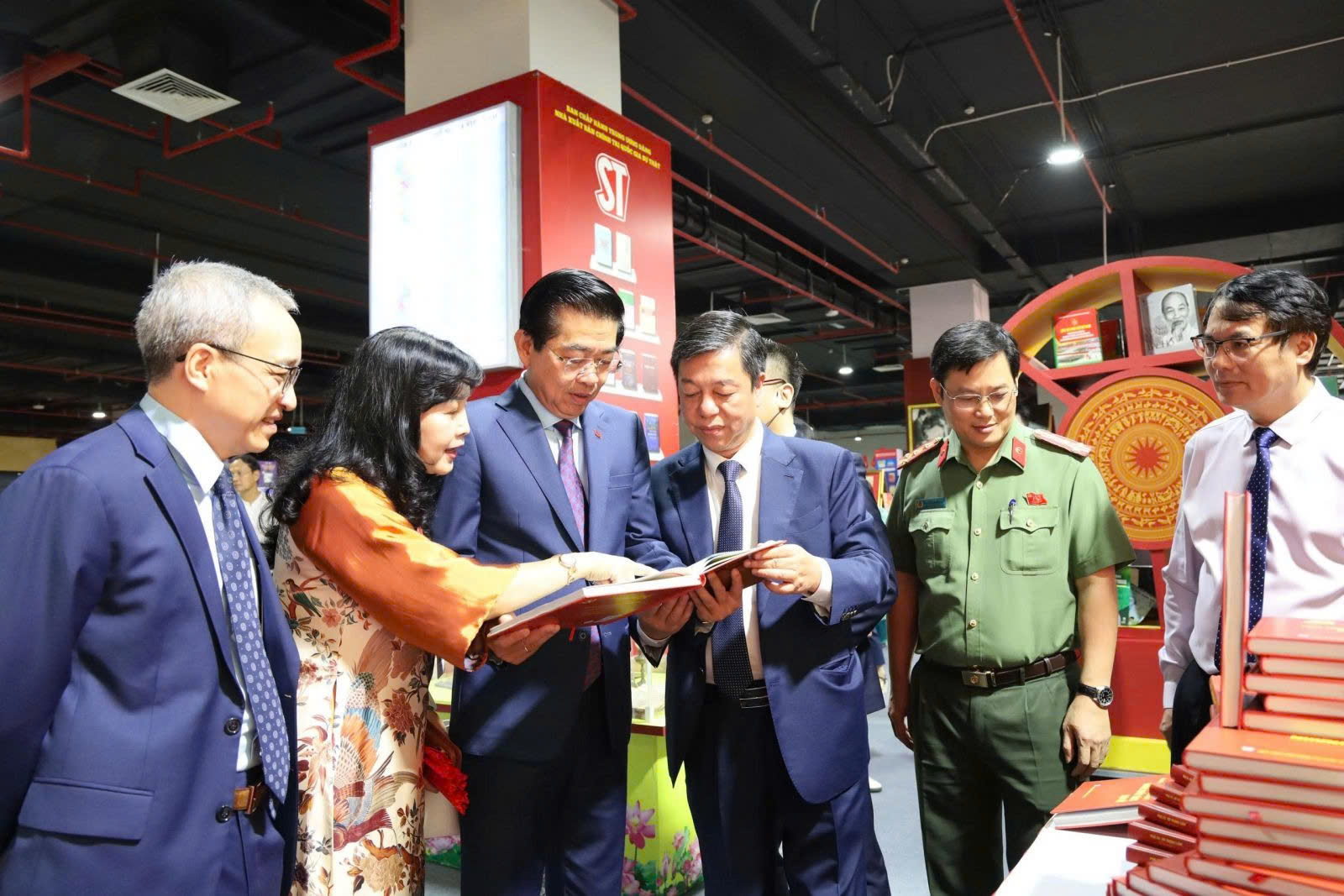 Các đại biểu tham quan không gian trưng bày sách của Nhà xuất bản Chính trị quốc gia Sự thật tại Triển lãm 80 năm Hành trình Độc lập - Tự do - Hạnh phúc.