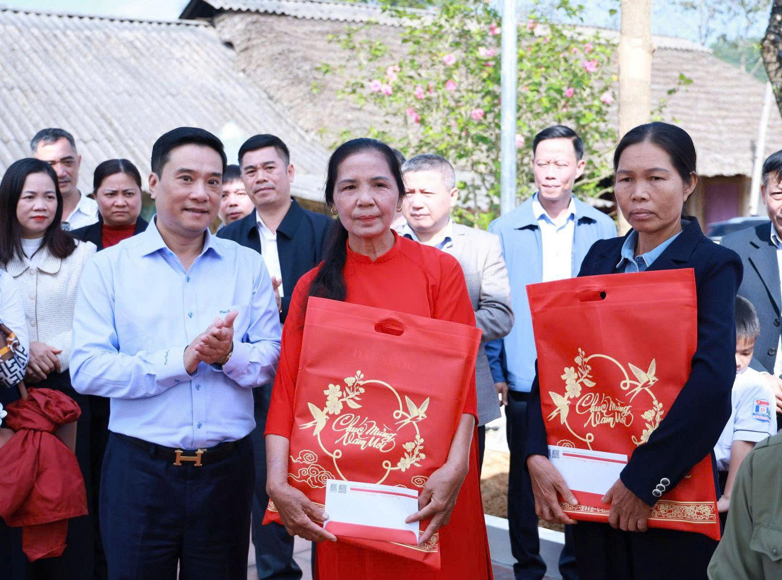 Hướng tới kỷ niệm 80 năm Ngày truyền thống Nhà xuất bản Chính trị quốc gia Sự thật (05/12/1945 - 05/12/2025), ngày 21/11/2025, Nhà xuất bản đã tổ chức chương trình về nguồn tại điểm di tích Nhà xuất bản tại thôn Làng Bình, xã Chiêm Hóa, tỉnh Tuyên Quang. Trong ảnh: Đoàn công tác của Nhà xuất bản tặng quà các gia đình chính sách, gia đình có công với cách mạng trên địa bàn xã Chiêm Hóa. Nơi đây từng là “căn cứ địa cách mạng” của Nhà xuất bản trong những năm kháng chiến chống thực dân Pháp xâm lược.