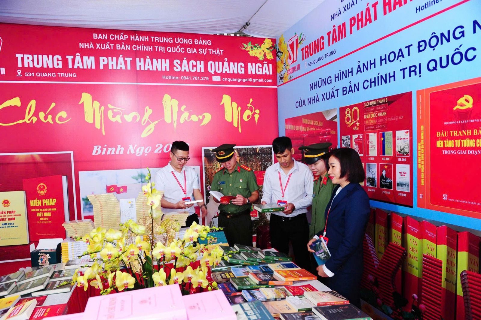 Tham gia Hội Báo xuân năm nay, Trung tâm Phát hành sách Quảng Ngãi, Nhà xuất bản Chính trị quốc gia Sự thật giới thiệu tới bạn đọc nhiều ấn phẩm có giá trị lý luận và thực tiễn cao, tiêu biểu như: bộ sách Hồ Chí Minh toàn tập, Hồ Chí Minh - Biên niên tiểu sử, các đầu sách chuyên khảo, nghiên cứu về Chủ tịch Hồ Chí Minh; sách của các đồng chí lãnh đạo Đảng, Nhà nước; cùng nhiều đầu sách mới về lịch sử, chính trị, kinh tế, văn hóa…