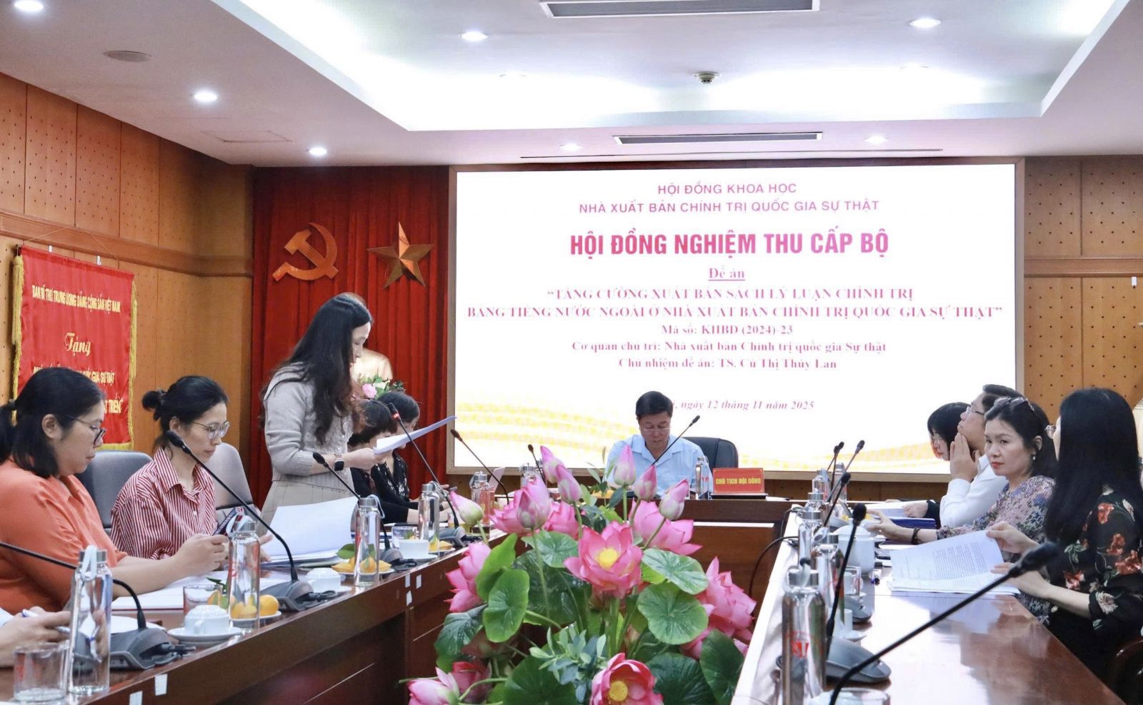 Chiều 12/11/2025, tại trụ sở Nhà xuất bản Chính trị quốc gia Sự thật, Hội đồng đánh giá, nghiệm thu kết quả thực hiện đề án khoa học cấp bộ năm 2024 - 2025 đã tổ chức nghiệm thu hai đề án khoa học của Nhà xuất bản. PGS.TS. Vũ Trọng Lâm, Giám đốc - Tổng Biên tập, Chủ tịch Hội đồng Khoa học Nhà xuất bản Chính trị quốc gia Sự thật làm Chủ tịch Hội đồng nghiệm thu.