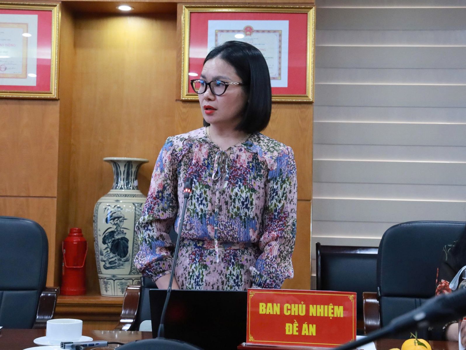 ThS. Phạm Thị Thinh, Phó Giám đốc - Phó Tổng Biên tập Nhà xuất bản, chủ nhiệm Đề án “Nâng cao chất lượng xuất bản tài liệu học tập, quán triệt nghị quyết, chỉ thị, kết luận của Đảng” trình bày tóm tắt nội dung Đề án.