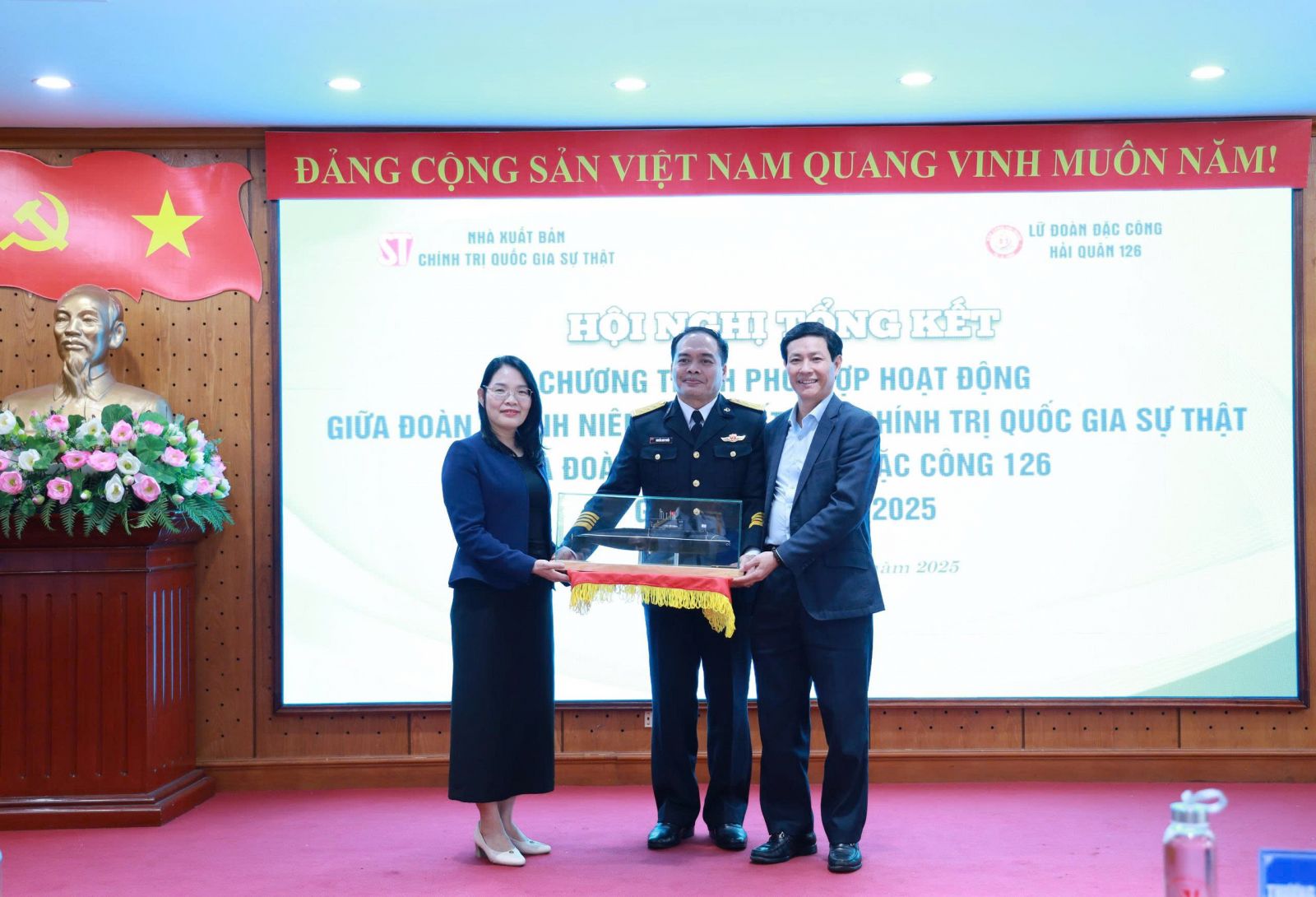Chiều 19/12/2025, tại Hà Nội, Đoàn Thanh niên Nhà xuất bản Chính trị quốc gia Sự thật và Đoàn Thanh niên Lữ đoàn Đặc công Hải quân 126 phối hợp tổ chức Hội nghị tổng kết Chương trình phối hợp hoạt động giai đoạn 2015 - 2025 và ký kết Chương trình phối hợp giai đoạn 2025 - 2035. Đây là dịp nhằm tăng cường giáo dục truyền thống, bồi dưỡng nhận thức chính trị, lòng tự hào dân tộc cho cán bộ, đoàn viên thanh niên hai đơn vị.
