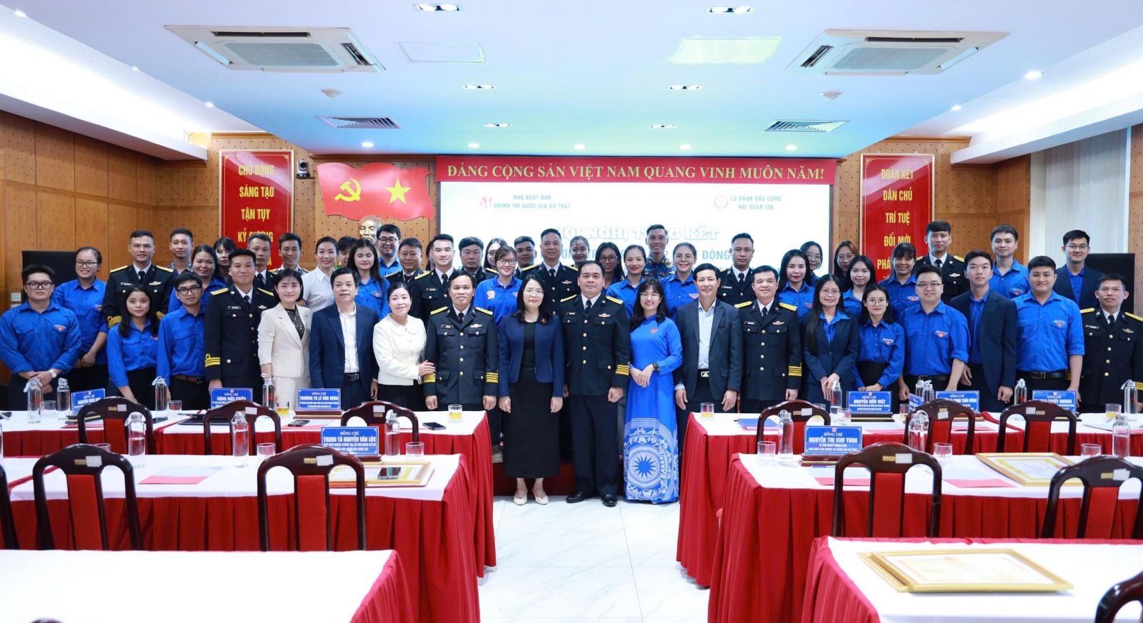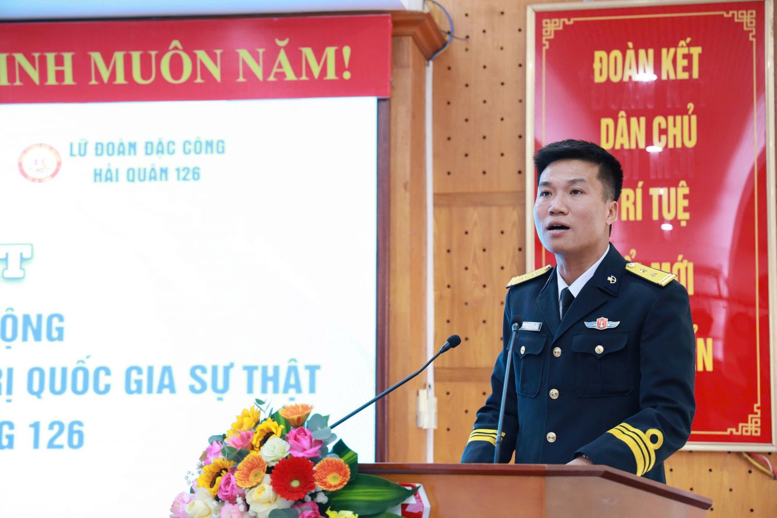 Thượng tá Nguyễn Như Tuyến, Ủy viên Ban Thường vụ Đảng ủy, Phó Chính ủy Lữ đoàn Đặc công Hải quân 126 và đồng chí Nguyễn Hoài Anh, Ủy viên Ban Thường vụ Đảng ủy, Phó Giám đốc - Phó Tổng Biên tập Nhà xuất bản Chính trị quốc gia Sự thật trao giấy khen cho các tập thể và cá nhân tiêu biểu có thành tích xuất sắc trong công tác phối hợp thực hiện nhiệm vụ giữa Đoàn Thanh niên hai đơn vị.