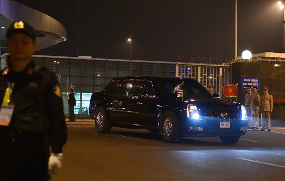 Sau nghi lễ tiếp đón, Tổng thống Donald Trump lên xe di chuyển về khách sạn Marriott ở quận Nam Từ Liêm, Hà Nội.