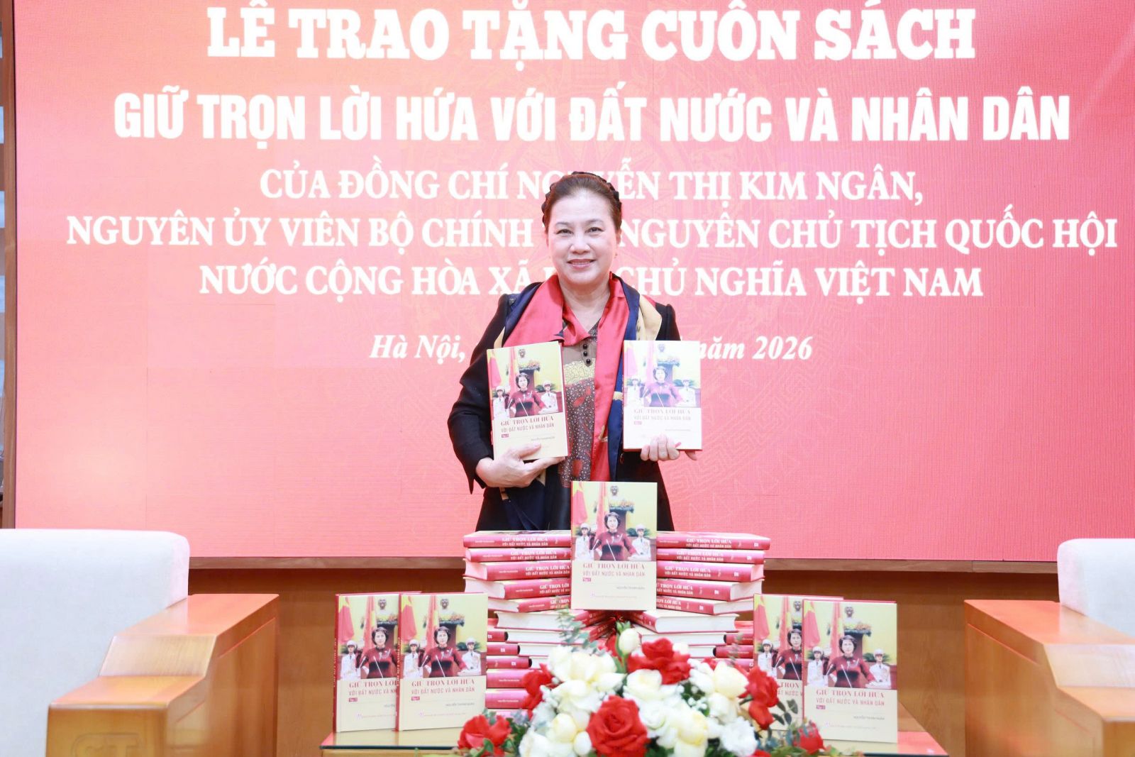 Nguyên Chủ tịch Quốc hội Nguyễn Thị Kim Ngân cùng cuốn sách “Giữ trọn lời hứa với đất nước và Nhân dân”.