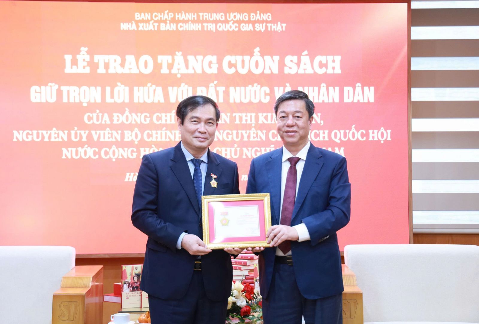 Tại buổi lễ, thay mặt Nhà xuất bản Chính trị quốc gia Sự thật, PGS.TS. Vũ Trọng Lâm đã trao tặng Kỷ niệm chương “Vì sự nghiệp xuất bản sách lý luận, chính trị của Đảng và Nhà nước” cho nguyên Chủ tịch Quốc hội Nguyễn Thị Kim Ngân và Phó Trưởng Ban Tuyên giáo và Dân vận Trung ương Phan Xuân Thủy.