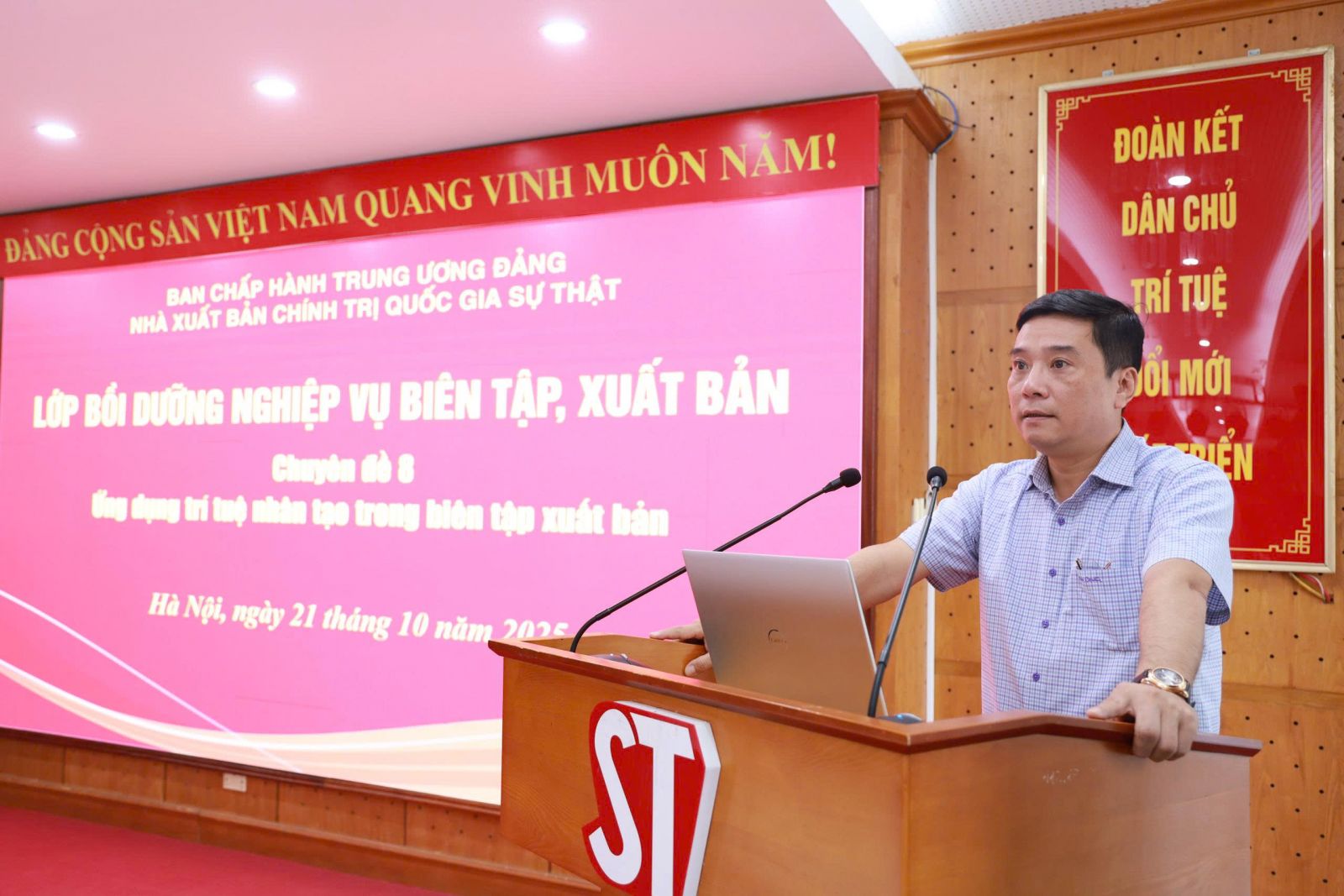 Phát biểu trước khi vào chuyên đề, đồng chí Nguyễn Thái Bình, Phó Giám đốc Nhà xuất bản Chính trị quốc gia Sự thật nhấn mạnh, đây là một chuyên đề hấp dẫn, bổ ích và thiết thực đối với đội ngũ cán bộ, biên tập viên của Nhà xuất bản trong bối cảnh toàn ngành đang tích cực chuyển đổi số, ứng dụng công nghệ mới vào hoạt động xuất bản. Đồng chí đề nghị các học viên nghiêm túc tiếp thu, chủ động trao đổi để cập nhật kiến thức mới, từ đó chủ động nghiên cứu, vận dụng sáng tạo vào thực tiễn công tác, góp phần nâng cao chất lượng, hiệu quả xuất bản phẩm của Nhà xuất bản.
