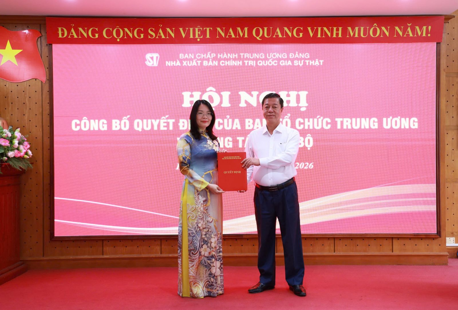 Sáng 29/4/2026, tại Hà Nội, Nhà xuất bản Chính trị quốc gia Sự thật tổ chức Hội nghị công bố quyết định của Ban Tổ chức Trung ương về công tác cán bộ. Theo đó, đồng chí Nguyễn Hoài Anh được bổ nhiệm lại chức danh Phó Giám đốc - Phó Tổng Biên tập Nhà xuất bản.