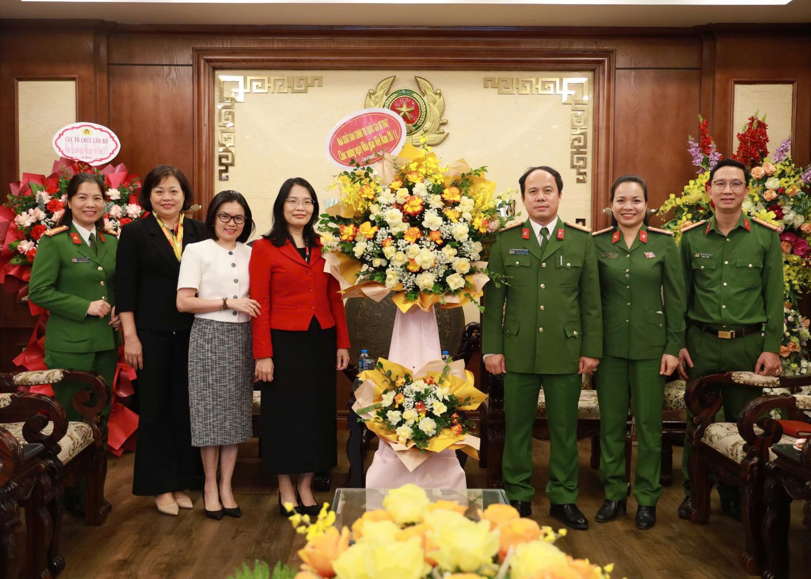 Đồng chí Võ Văn Bé, Phó Giám đốc - Phó Tổng Biên tập Nhà xuất bản Chính trị quốc gia Sự thật chúc mừng Học viện An ninh Nhân dân.