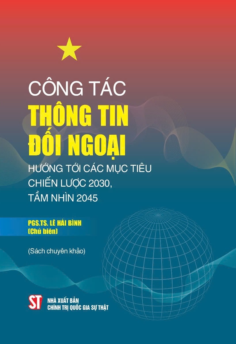 Cuốn sách Công tác thông tin đối ngoại hướng tới các mục tiêu chiến lược 2030, tầm nhìn 2045 do PGS.TS. Lê Hải Bình chủ biên. Trên cơ sở khái quát lý luận và thực tiễn hoạt động thông tin đối ngoại trên thế giới, thực tiễn công tác thông tin đối ngoại ở Việt Nam, cuốn sách đi sâu phân tích, làm rõ và đưa ra các nhóm giải pháp nhằm phát huy vai trò của thông tin đối ngoại trong quá trình bảo vệ nền tảng tư tưởng của Ðảng; tranh thủ cao nhất sự ủng hộ, đồng tình, đóng góp của cộng đồng người Việt Nam tại nước ngoài, bạn bè quốc tế đối với quá trình xây dựng, bảo vệ Tổ quốc cũng như kịp thời phản bác các quan điểm xuyên tạc, vô căn cứ về Việt Nam, chống Ðảng, chống Nhà nước, chống chế độ; đồng thời vạch ra nhiệm vụ của công tác thông tin đối ngoại trong thời gian tới là tiếp tục đẩy mạnh chuyển đổi số, tìm kiếm các biện pháp, phương thức mới để nâng cao hiệu quả hoạt động, đưa các nội dung thông tin đối ngoại của Việt Nam vào các sản phẩm văn hóa đại chúng, phù hợp với thị hiếu, nhu cầu thông tin của từng quốc gia, từng khu vực, từ đó đưa thông tin về Việt Nam lan tỏa hơn nữa tới các nước trong khu vực và trên thế giới.