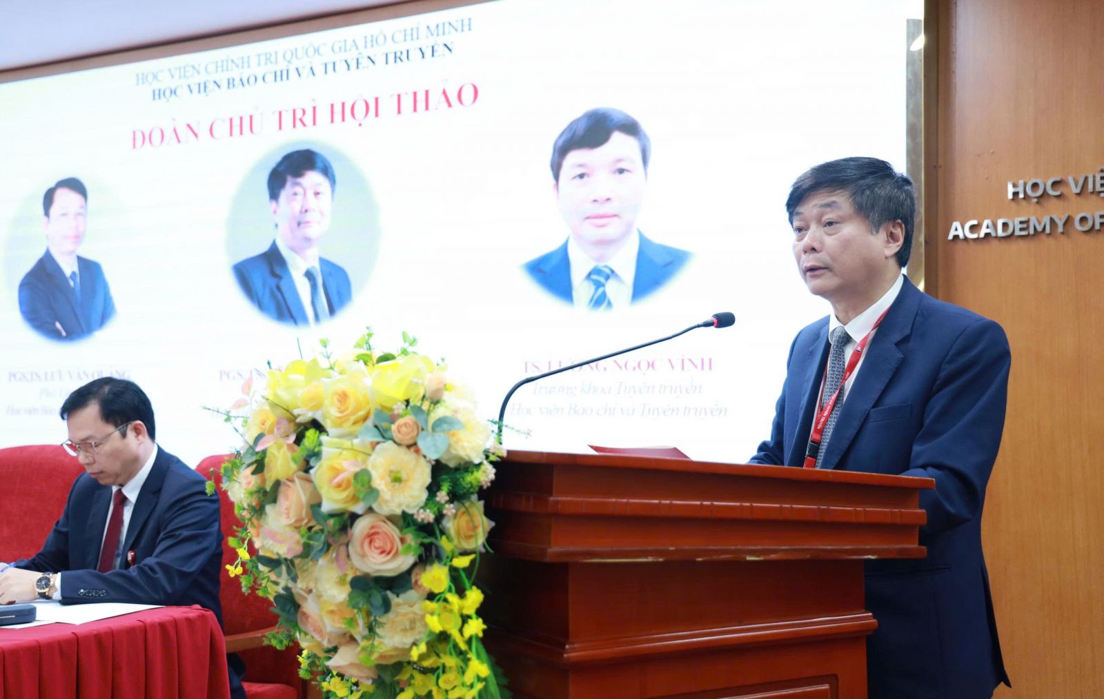 PGS.TS. Lưu Văn Quảng, Phó Giám đốc Học viện Báo chí và Tuyên truyền phát biểu đề dẫn Hội thảo.