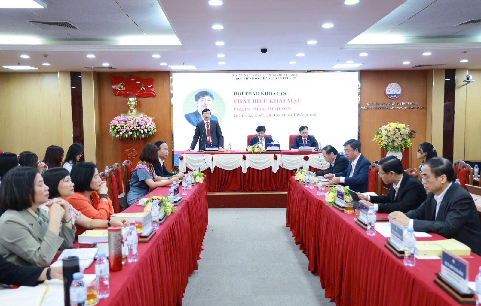 Phát biểu khai mạc Hội thảo, PGS.TS. Phạm Minh Sơn, Giám đốc Học viện Báo chí và Tuyên truyền nhấn mạnh, truyền thông chính sách có vai trò chiến lược trong giai đoạn hiện nay. Trong bối cảnh toàn cầu hóa, hội nhập quốc tế sâu rộng và sự phát triển mạnh mẽ của công nghệ số, truyền thông chính sách không chỉ là hoạt động phổ biến thông tin, mà còn là cầu nối giữa Đảng, Nhà nước và nhân dân, góp phần định hướng dư luận xã hội, củng cố niềm tin, tạo đồng thuận và huy động sức mạnh toàn dân tộc.