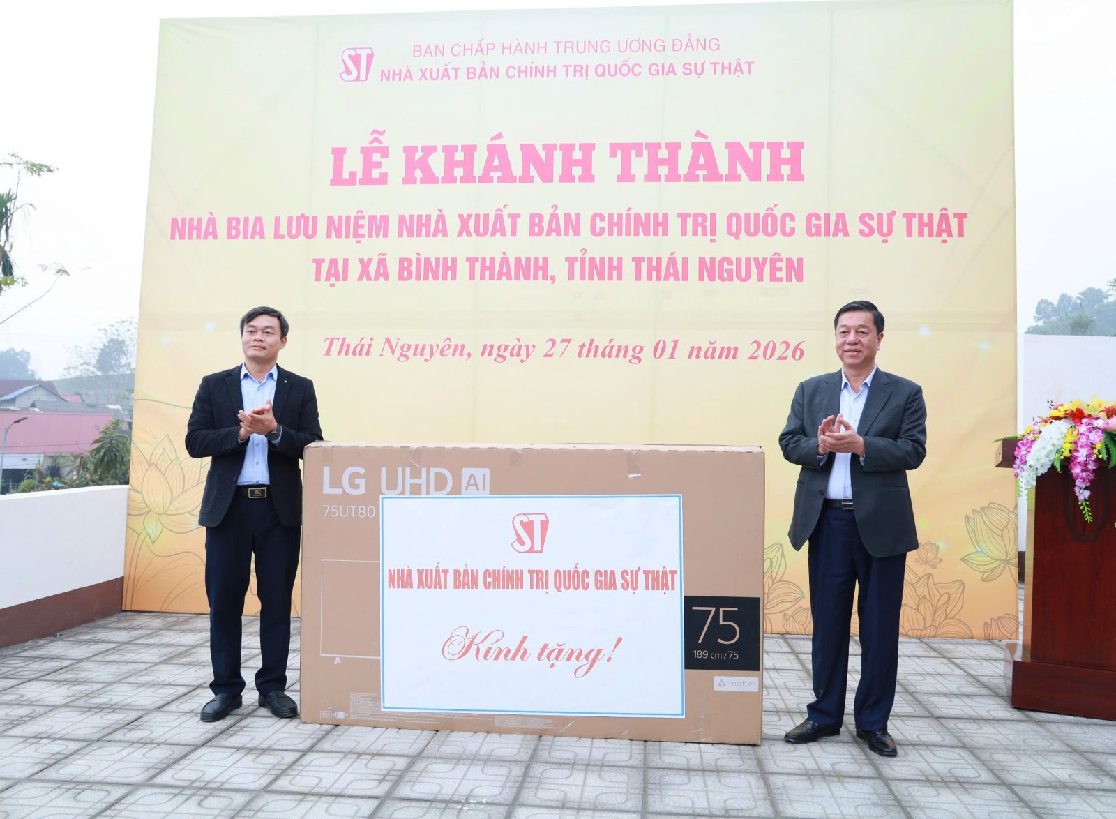 Ngày 27/01/2026, tại xã Bình Thành, tỉnh Thái Nguyên, Nhà xuất bản Chính trị quốc gia Sự thật long trọng tổ chức Lễ khánh thành Nhà bia lưu niệm Nhà xuất bản Chính trị quốc gia Sự thật - công trình ghi dấu nơi từng là trụ sở làm việc của Nhà xuất bản trong thời kỳ kháng chiến chống thực dân Pháp xâm lược.