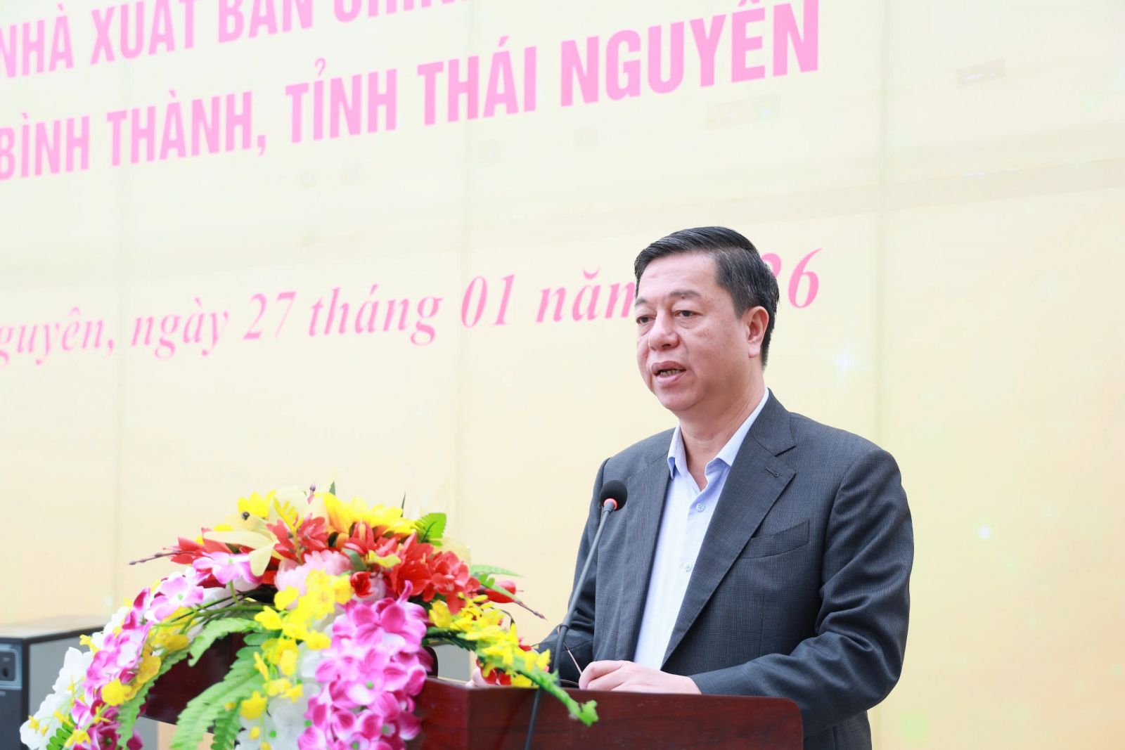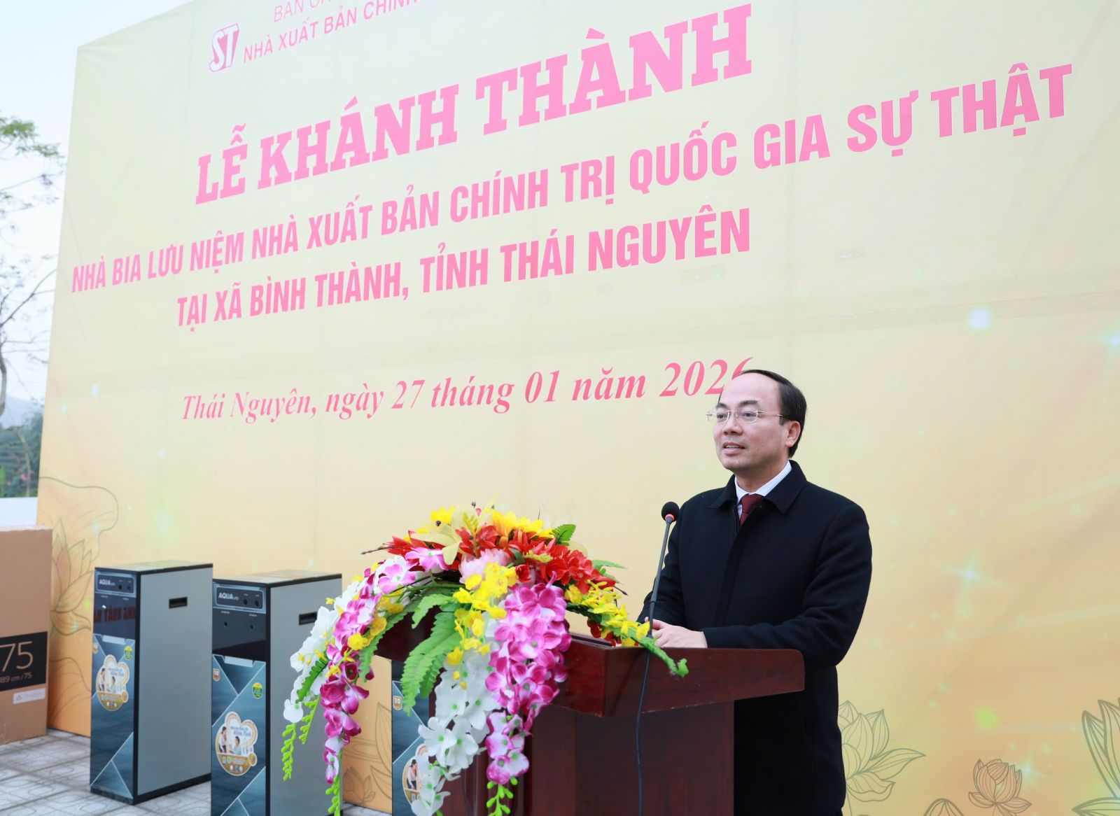 Phát biểu tại buổi lễ, đồng chí Nguyễn Đăng Bình, Phó Bí thư Thường trực Tỉnh ủy, Chủ tịch Hội đồng nhân dân tỉnh Thái Nguyên bày tỏ sự vui mừng, phấn khởi và chúc mừng Nhà xuất bản Chính trị quốc gia Sự thật đã khánh thành Nhà bia lưu niệm tại xã Bình Thành.