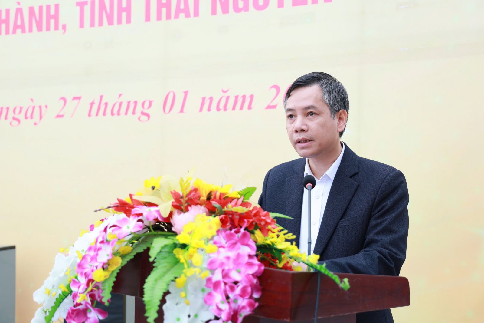 Đồng chí Nguyễn Đăng Bình, Phó Bí thư Thường trực Tỉnh ủy, Chủ tịch Hội đồng nhân dân tỉnh Thái Nguyên phát biểu tại buổi lễ.