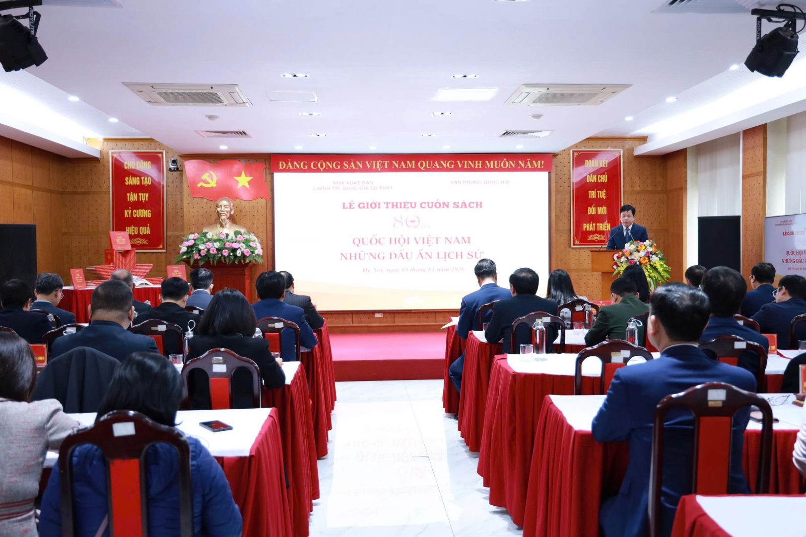 Chiều 05/01/2026, tại Hà Nội, nhân kỷ niệm 80 năm Ngày Tổng tuyển cử đầu tiên bầu Quốc hội Việt Nam (06/01/1946 - 06/01/2026), chào mừng Đại hội đại biểu toàn quốc lần thứ XIV của Đảng, Nhà xuất bản Chính trị quốc gia Sự thật phối hợp với Văn phòng Quốc hội tổ chức Lễ giới thiệu cuốn sách “80 năm Quốc hội Việt Nam - Những dấu ấn lịch sử”.
