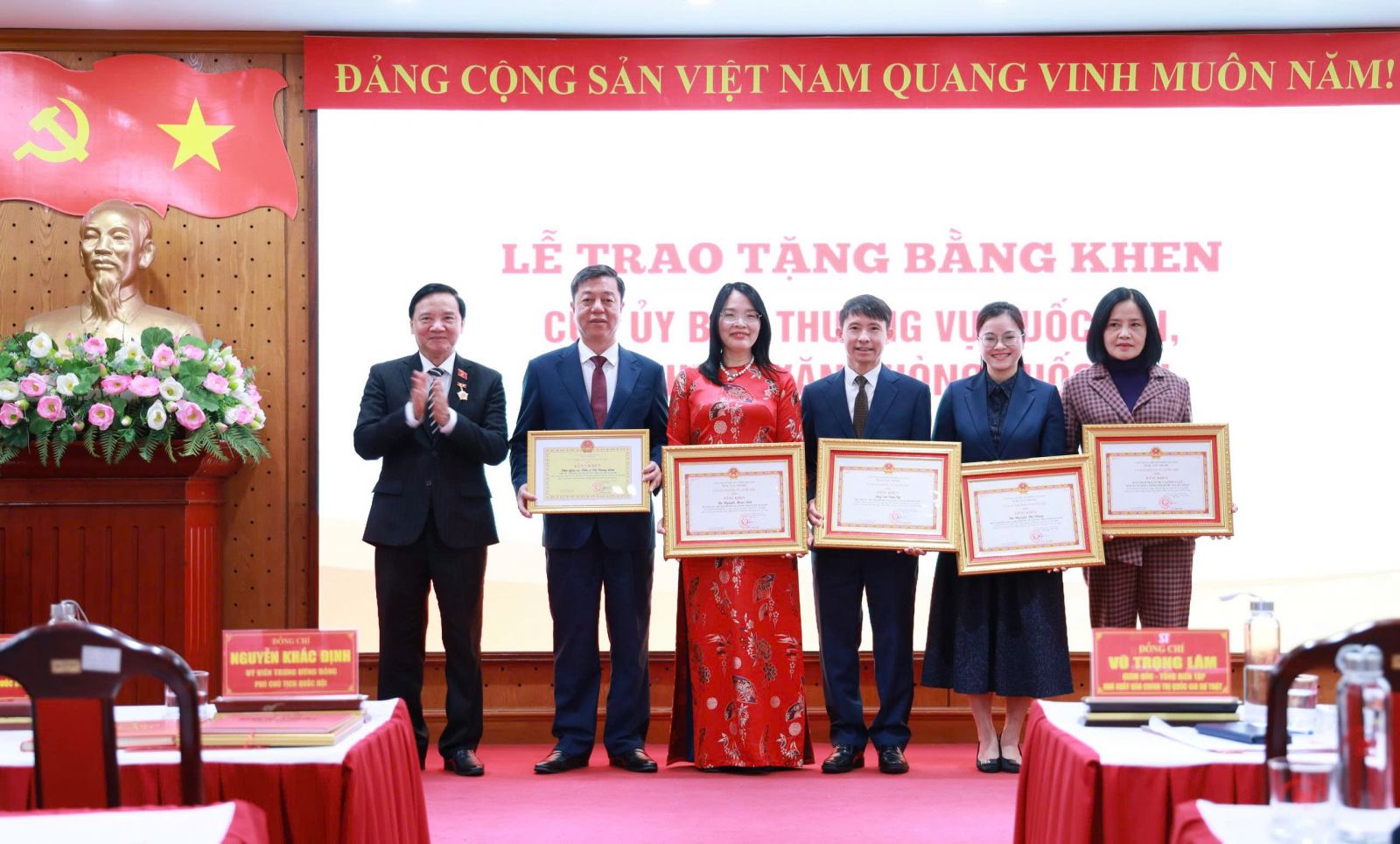 Đồng chí Nguyễn Khắc Định, Ủy viên Trung ương Đảng, Phó Chủ tịch Quốc hội trao tặng Bằng khen của Ủy ban Thường vụ Quốc hội cho các tập thể, cá nhân của Nhà xuất bản đã có nhiều thành tích trong công tác phối hợp giữa hai cơ quan.