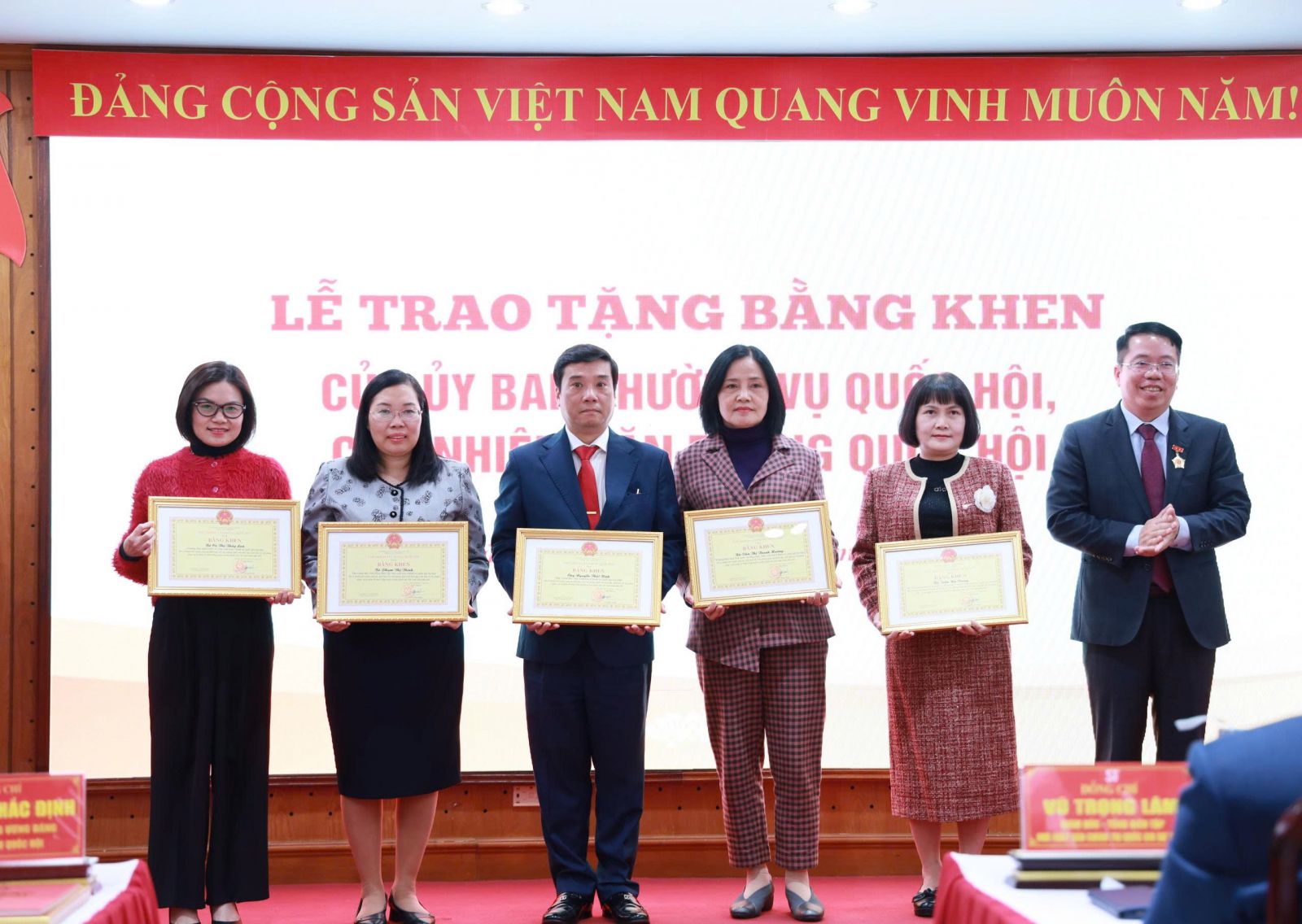 Đồng chí Nguyễn Văn Hiển, Phó Chủ nhiệm Văn phòng Quốc hội trao tặng Bằng khen của Chủ nhiệm Văn phòng Quốc hội cho các cá nhân có nhiều thành tích trong công tác phối hợp giữa hai cơ quan.