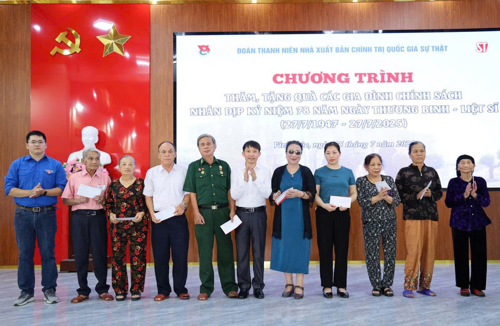 Đồng chí Võ Văn Bé, Phó Giám đốc - Phó Tổng Biên tập Nhà xuất bản Chính trị quốc gia Sự thật thay mặt Lãnh đạo Nhà xuất bản tặng quà các gia đình chính sách nhân dịp kỷ niệm 78 năm Ngày Thương binh - Liệt sĩ tại phường Vinh Lộc, tỉnh Nghệ An.