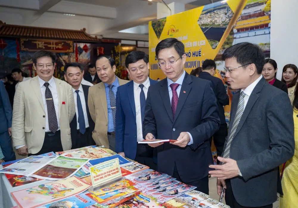 Lãnh đạo thành phố Huế tham quan các gian trưng bày tại Hội báo.