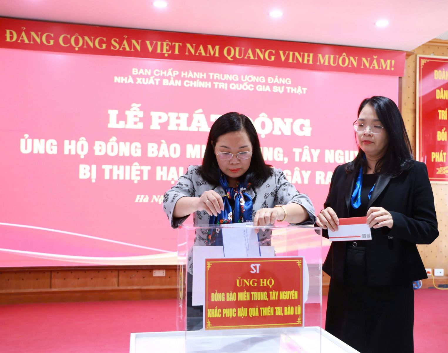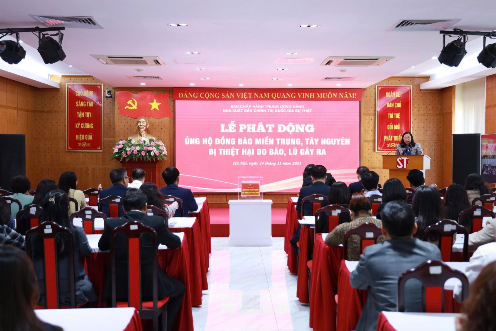 Trước những khó khăn, thiệt hại đồng bào miền Trung, Tây Nguyên đang phải gánh chịu do thiên tai bão lũ, chiều 24/11/2025, tại Hà Nội, Nhà xuất bản Chính trị quốc gia Sự thật tổ chức lễ phát động ủng hộ đồng bào vùng thiên tai trong toàn thể cán bộ, viên chức và người lao động.