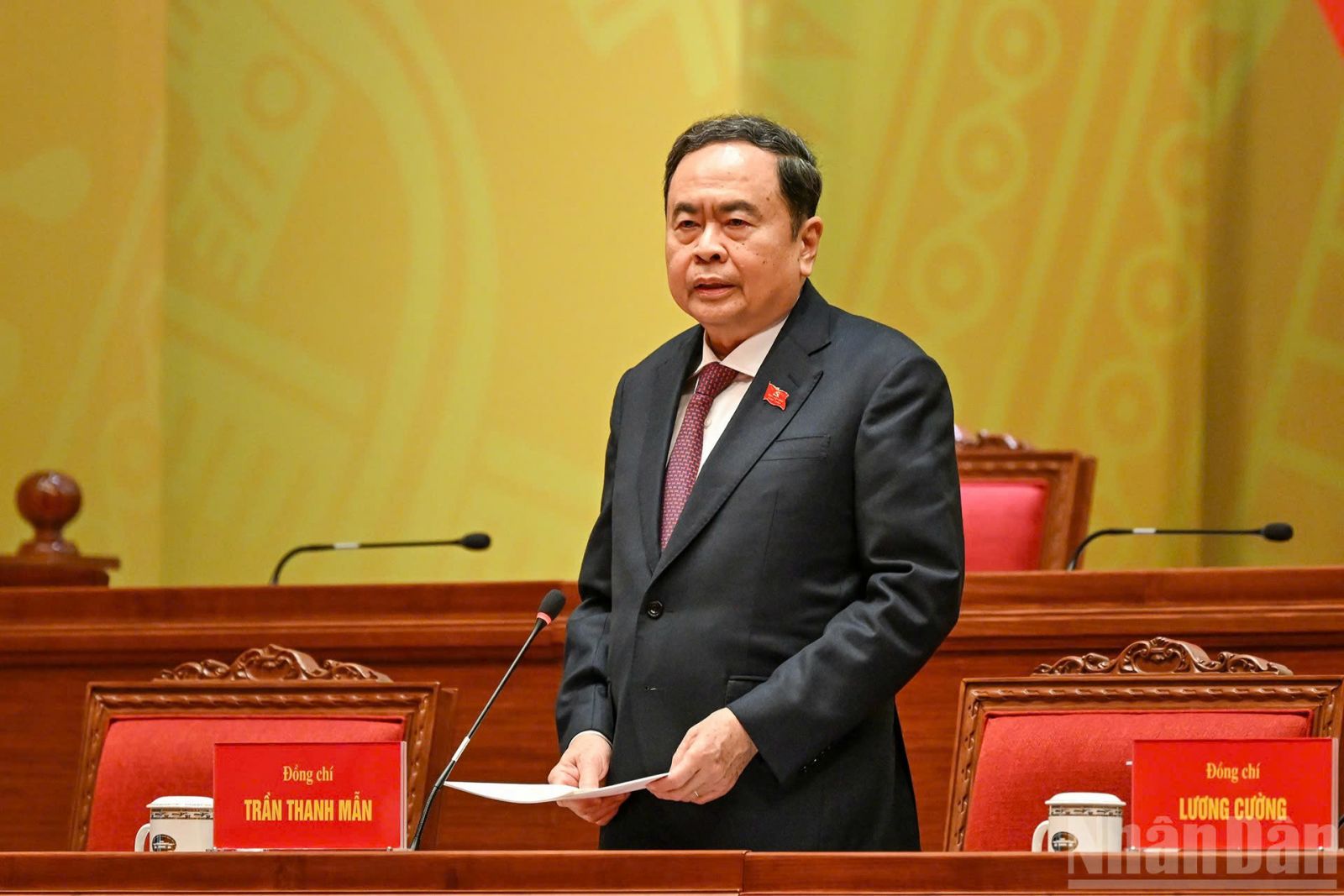 Đồng chí Trần Thanh Mẫn, Ủy viên Bộ Chính trị, Chủ tịch Quốc hội nước Cộng hòa xã hội chủ nghĩa Việt Nam thay mặt các đồng chí lãnh đạo chủ chốt của Đảng, Nhà nước điều hành phiên họp trù bị.