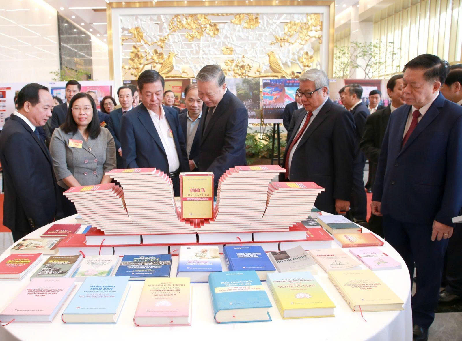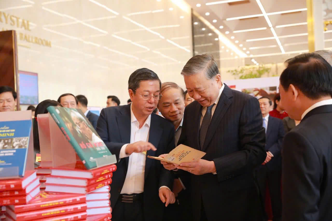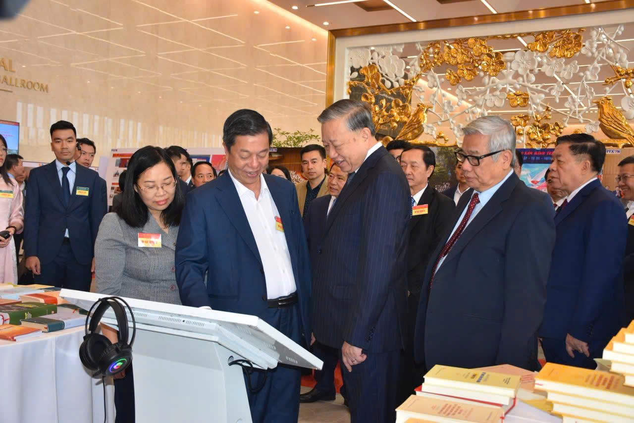 Trước khi Hội nghị diễn ra, Tổng Bí thư Tô Lâm cùng các đồng chí lãnh đạo Đảng, Nhà nước và đại biểu đã tham quan không gian trưng bày sách, triển lãm ảnh và thành tựu chuyển đổi số trong báo chí.